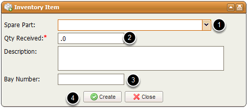 The entry form is presented . Select a Spare Part . Consumable from the drop down list (1) , enter the other values as per screen below and click Create :