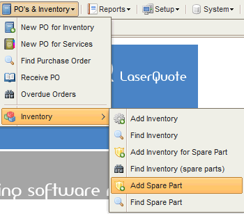 Access the Add Inventory for Spare Part via the menu below :