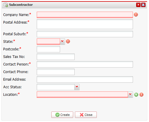 Enter the required information about your subcontractor and click "Create" to save the record .