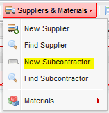 To create a Subcontractor navigate to the top menu > Suppliers & Materials > New Subcontractor