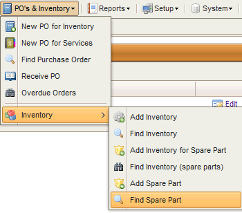 Access the Find Spare Part menu using as shown below :