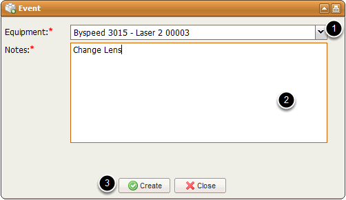 The Record Event window is used to allow operators to record events related to the equipment they are operating :