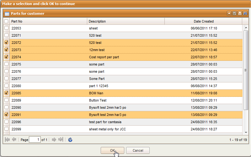 Once you completed you selection and selected OK the parts selected will be featured in the lie items of the quote .
