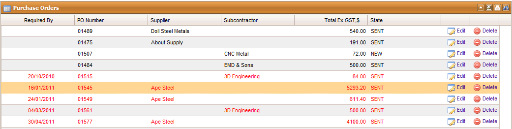 This selection will display a list of Purchase Orders which have exceeded the "Required by Date"