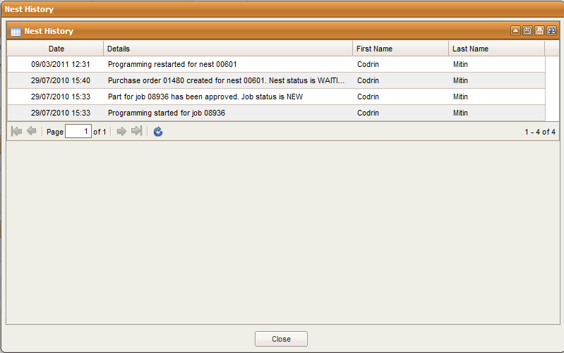 A history record shows the stages this nest has experienced :