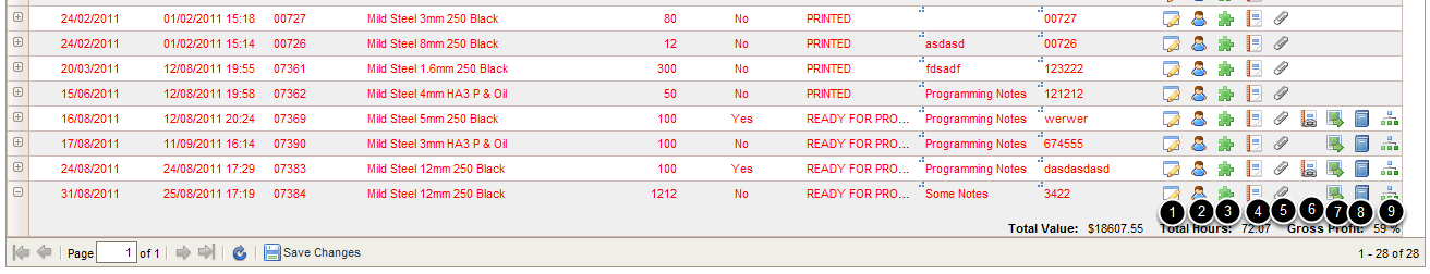 5.press this to show a list of all digital attachments ( Order. PDF,DxF etc) for this nest and its parts