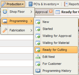 A list of nests ready to cut is displayed :