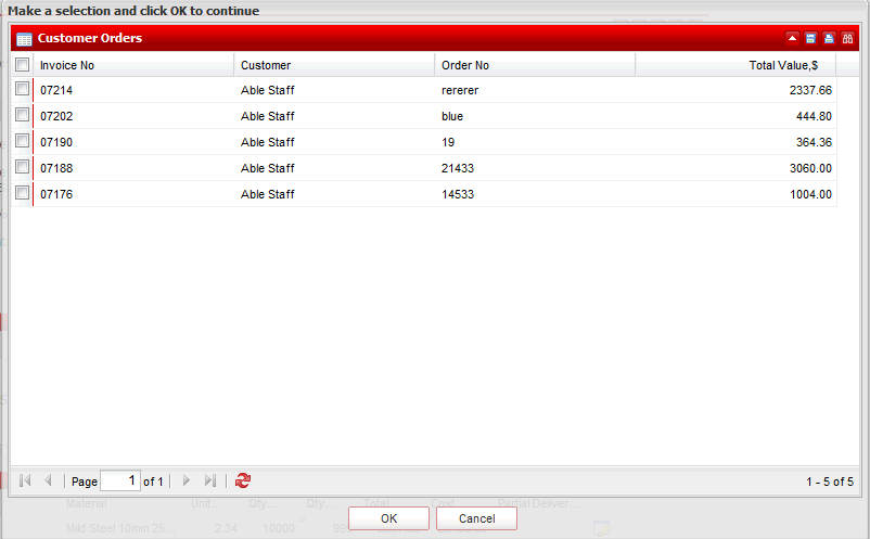 3. Select the order that you would like to deliver from the displayed list . Only orders for the selected customer which are completed and not delivered will be shown here.