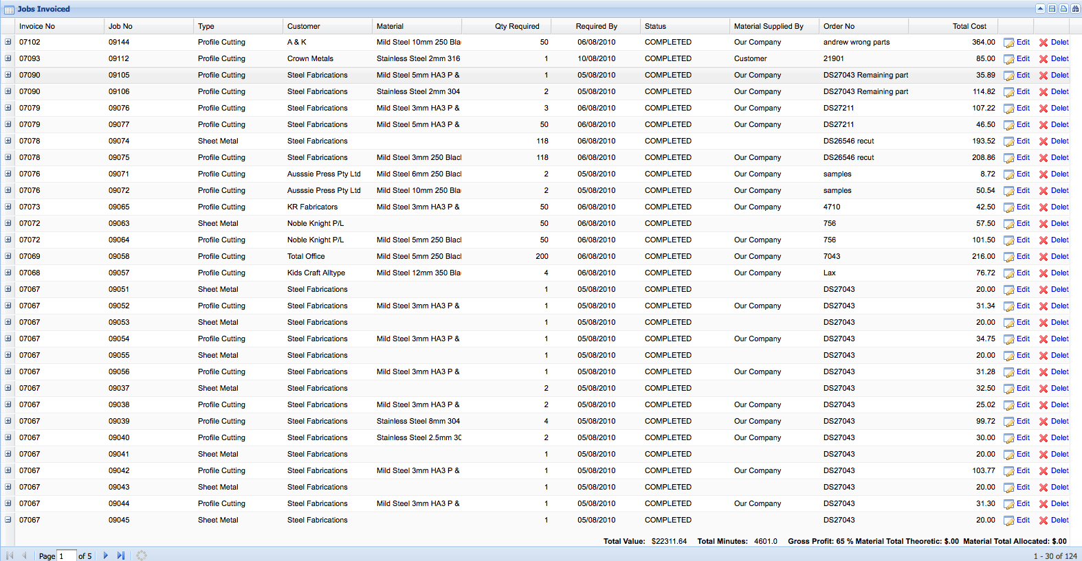 Add total theoretic material cost per job+ Total Value delivered instead of total job value.