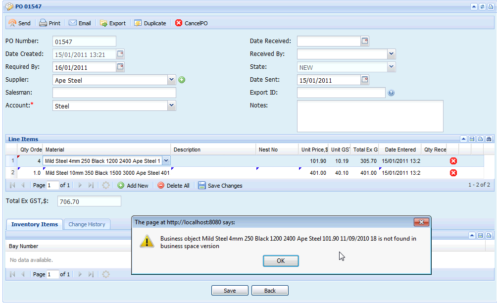 Fixed the duplication of PO line items gives an error as if the the line items duplicated do not belong to the newly create PO.